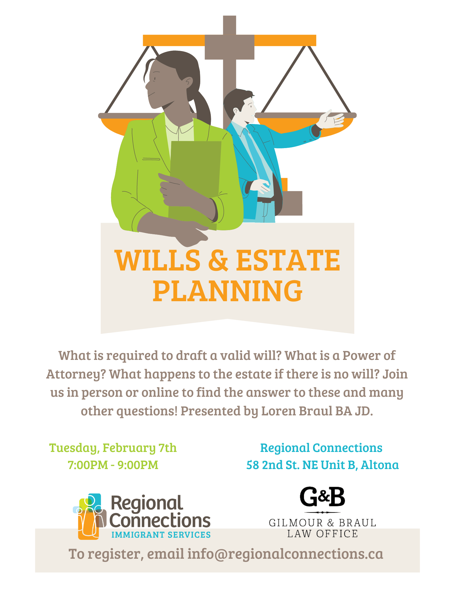 What is required to draft a valid will? What is a Power of Attorney? What happens to the estate if there is no will? Join us in person or online to find the answer to these and many other questions! Presented by Loren Braul BA JD.