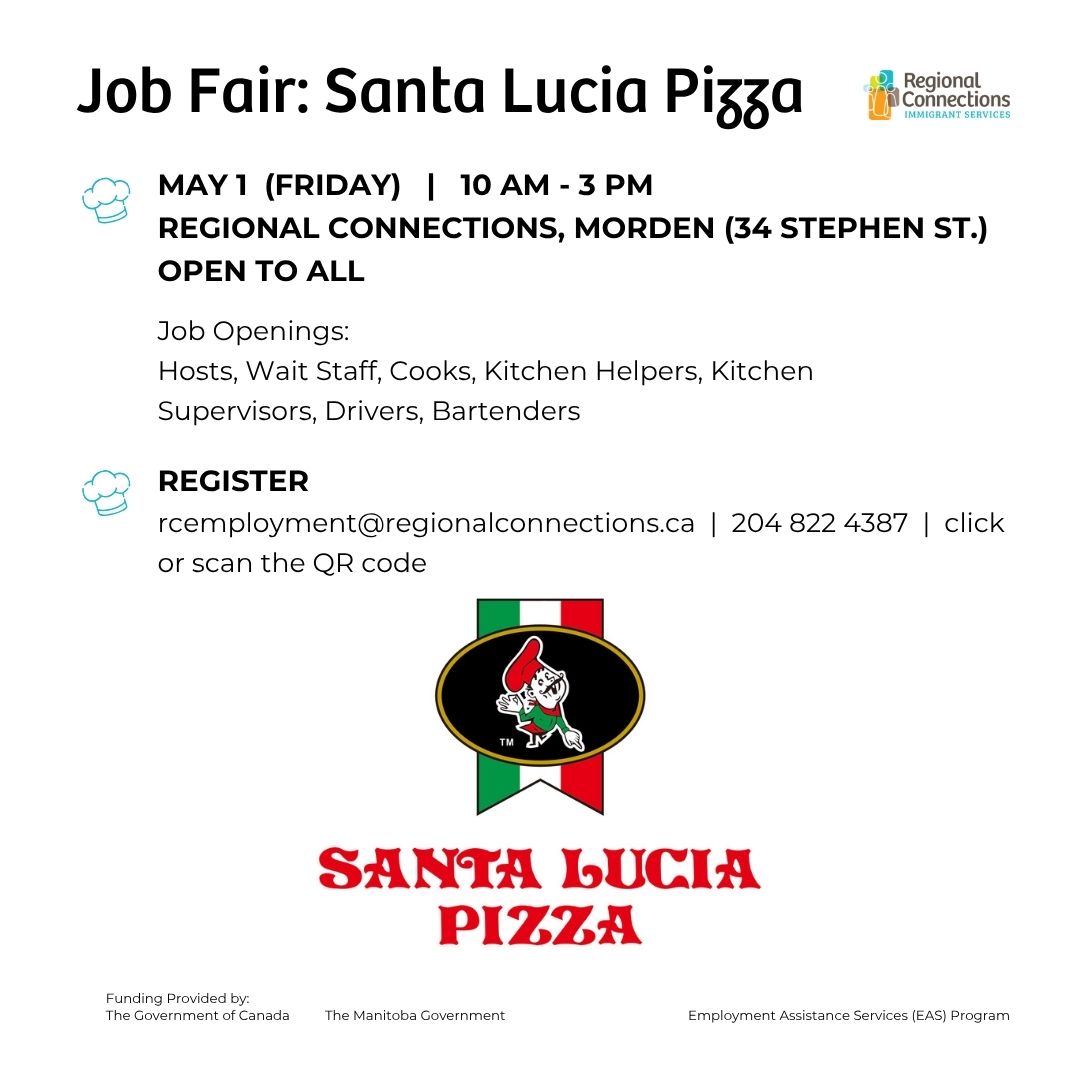 Come join us for a job fair with Santa Lucia Pizza on May 1st! We’d love to see you there!