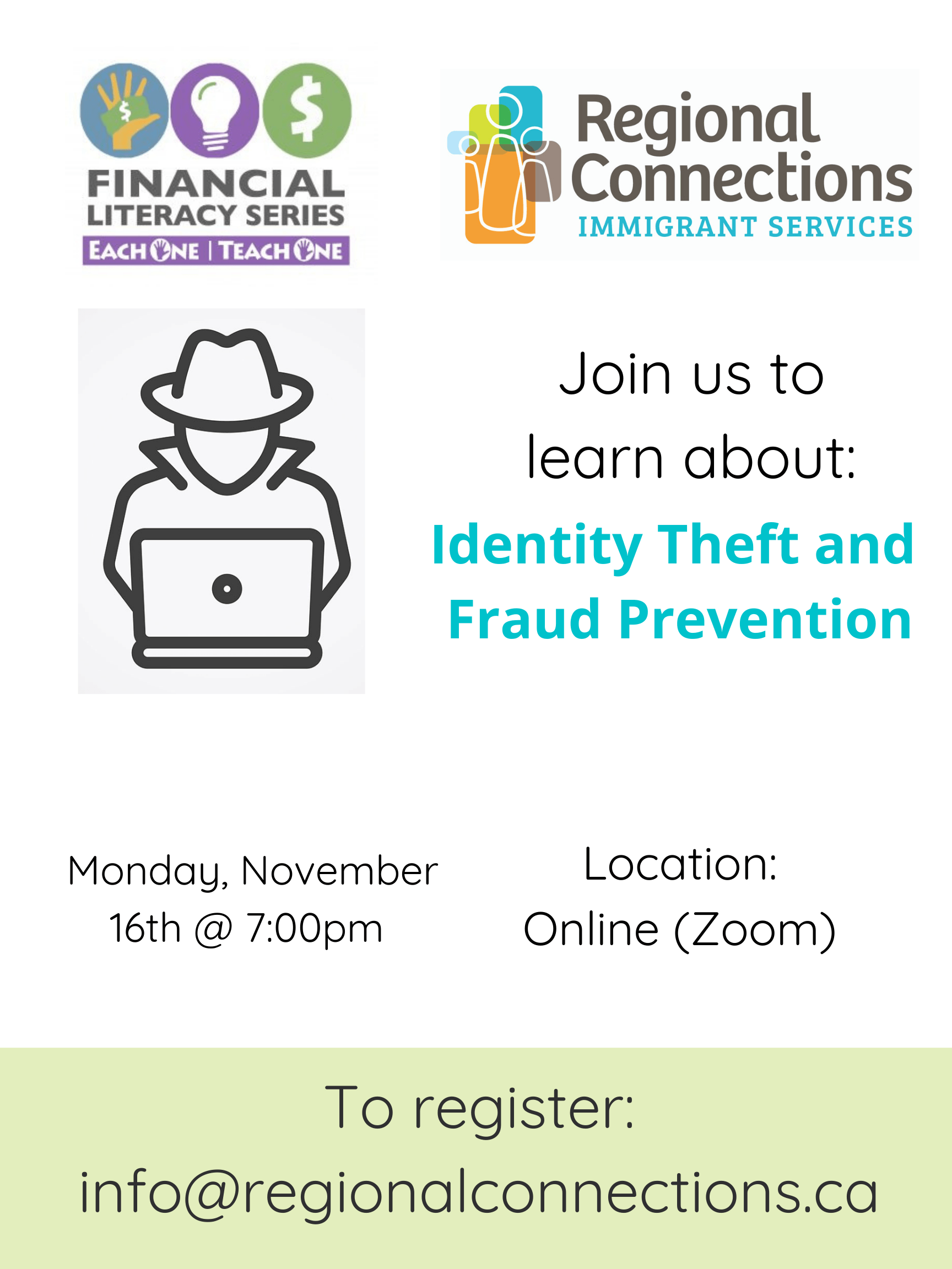Identity theft is a serious crime where your personal information—anything from your name, driver’s license, or Social Insurance Number has been compromised. To learn more about this topic join us online!