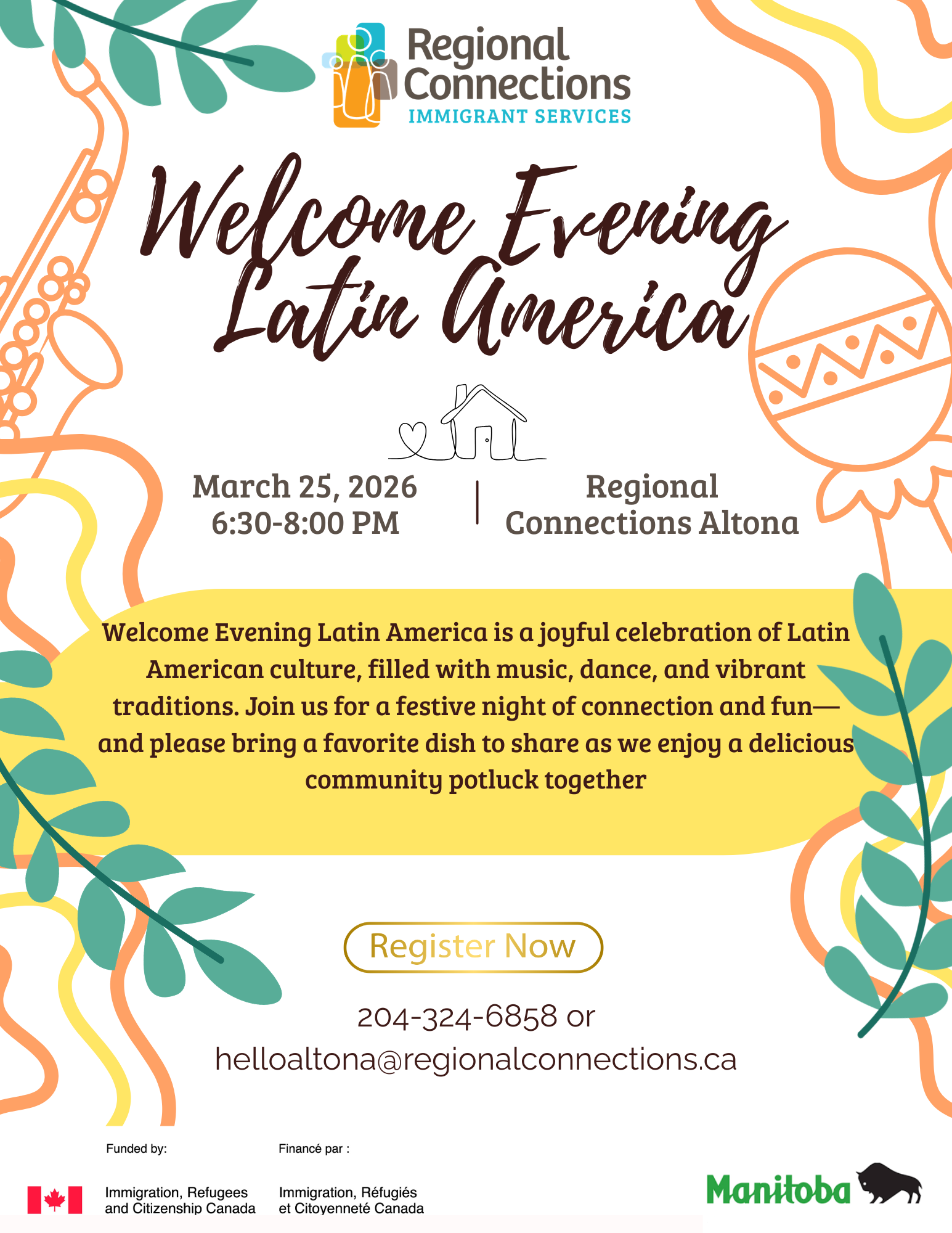 Welcome Evening Latin America is a joyful celebration of Latin American culture, filled with music, dance, and vibrant traditions. Join us for a festive night of connection and fun—and please bring a favorite dish to share as we enjoy a delicious community potluck together.