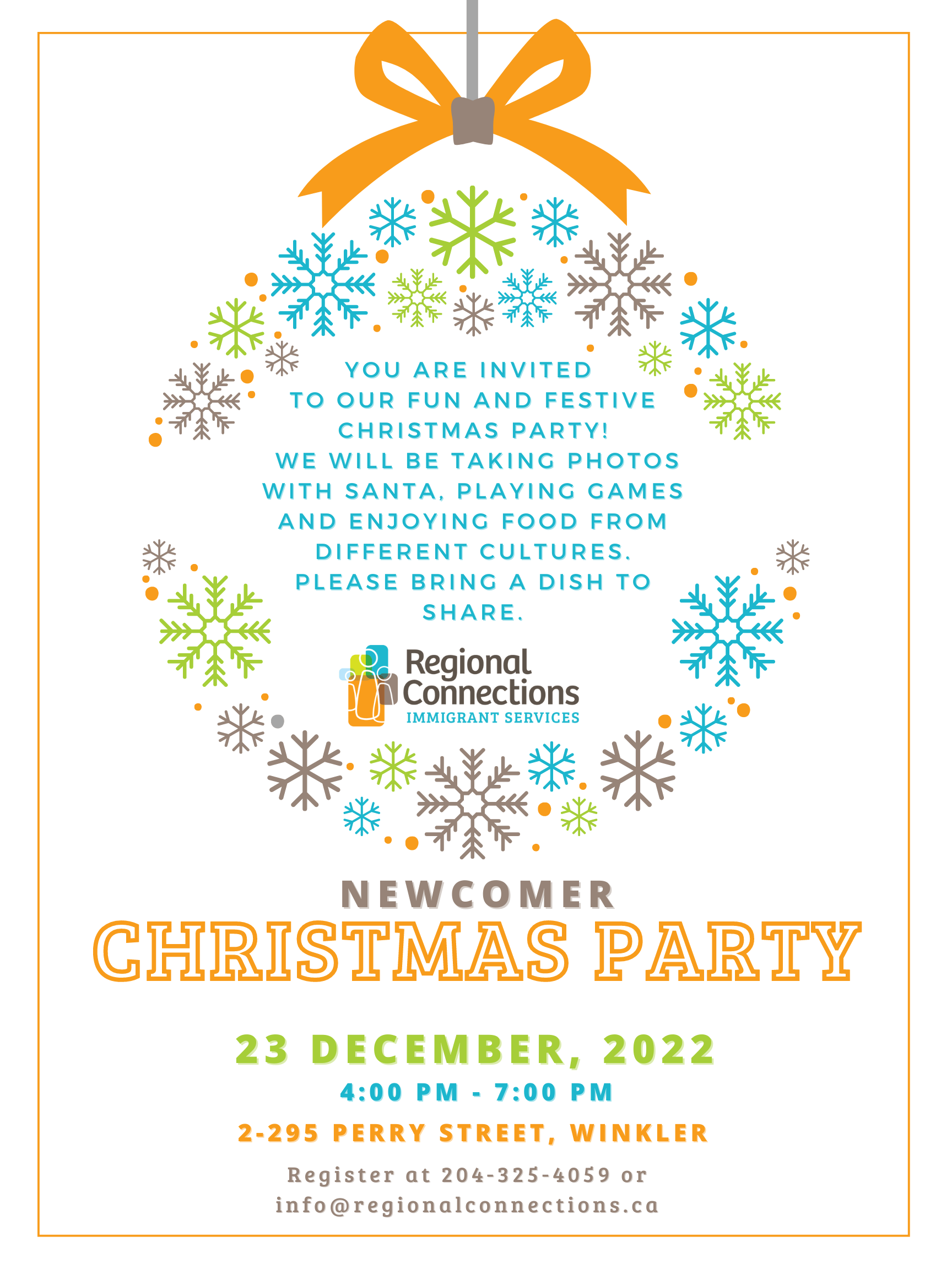You are invited to our fun and festive Christmas Party! We will be taking photos with Santa, playing games and enjoying food from different cultures. Please bring a dish to share.