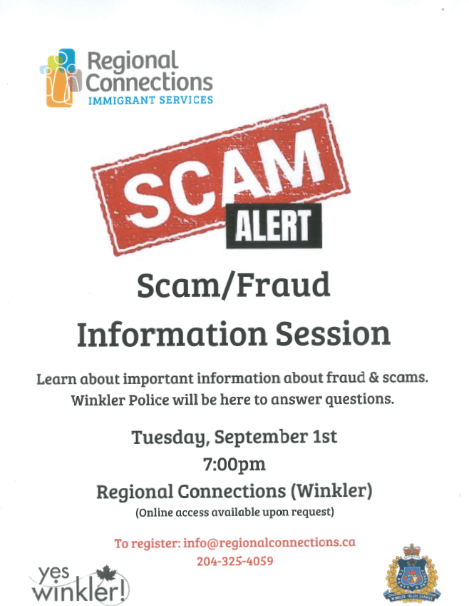 Learn about important information about fraud & scams. Winkler Police will be here to answer questions.