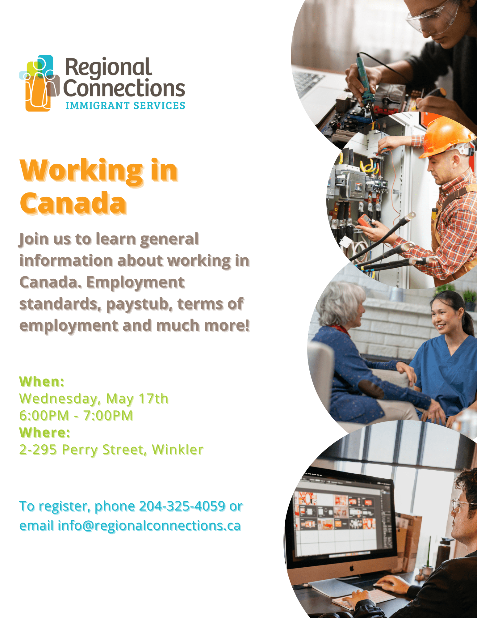 Join us to learn general information about working in Canada. Employment standards, paystub, terms of employment and much more!