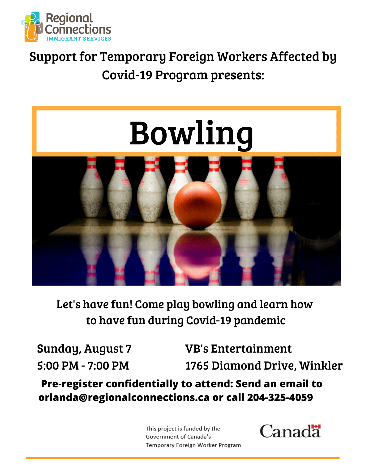 Bowling (Boliche) August 7, 2022 @ 5:00 pm - 7:00 pm Vb's Entertainment 1765 Diamond Drive, Winkler, Manitoba, Canada