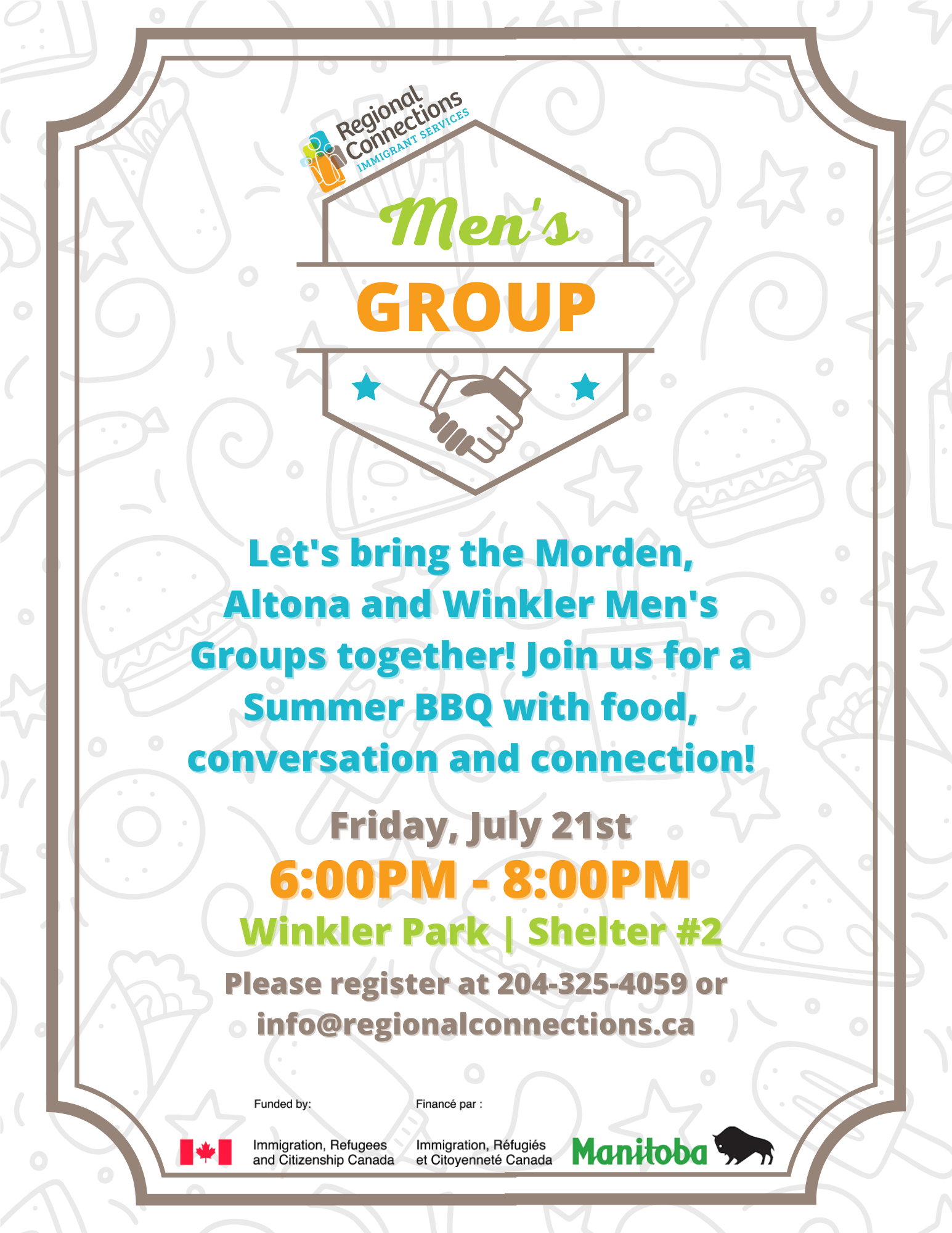 Let's bring the Morden, Altona and Winkler Men's Groups together! Join us for a Summer BBQ with food, conversation and connection!